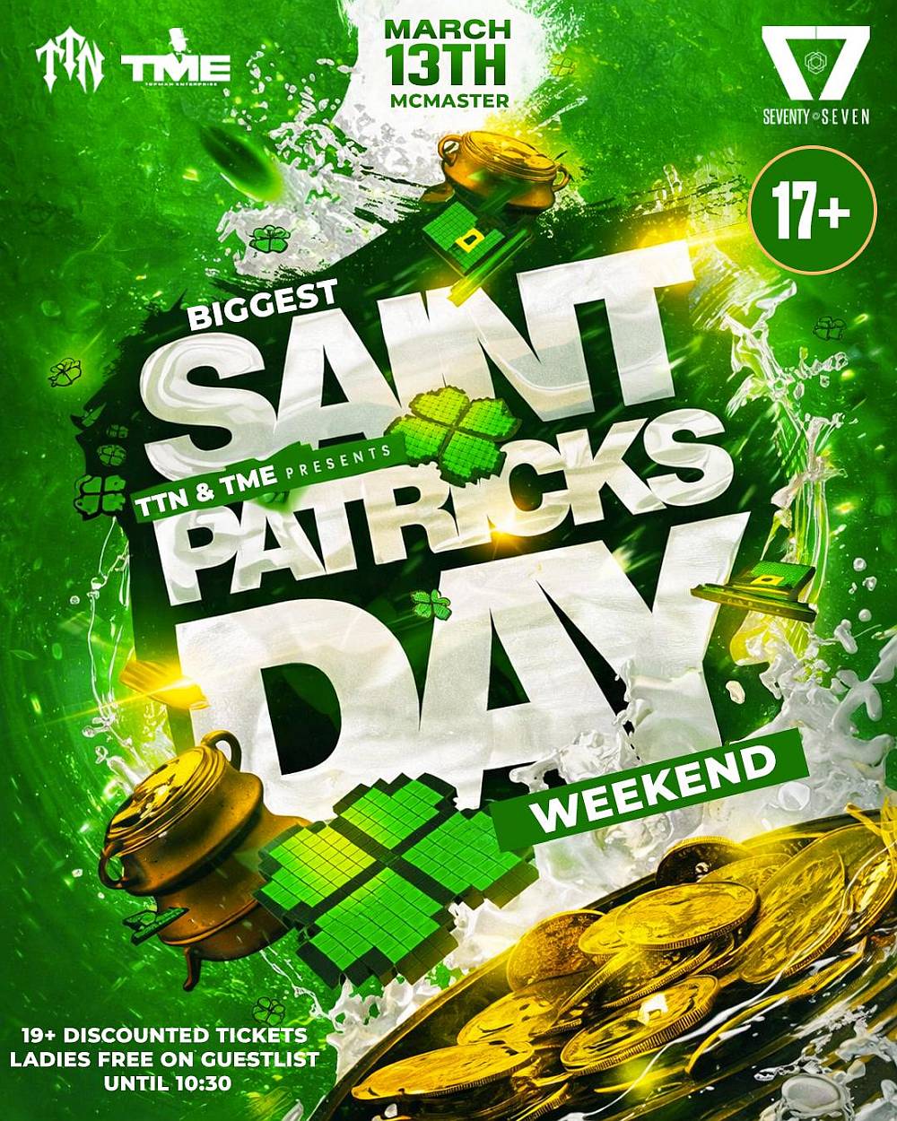 MARCH 13TH, 2026ST PATRICKS DAY WEEKEND - 17 + MAIN ROOM